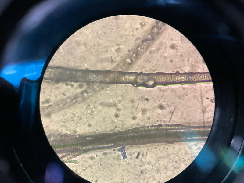 皮膚糸状菌症や、シラミなどの外部寄生虫が疑われる時は被毛を顕微鏡で見て観察します。